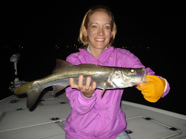 jumps out of a very large Tarpon but that was it. Caught some Snook and Sherry got a nice Jack.