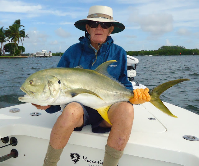 Kevin with his first big saltwater fish on fly that pulled back a little. Jacks are awesome fly rod fish!